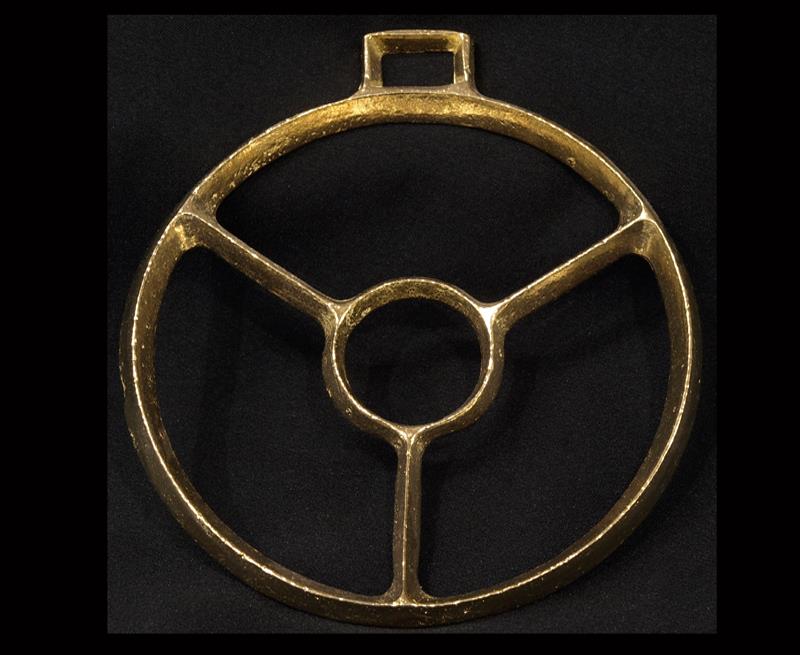 Metalna alka u prirodnoj veličini. Oblikom i dimenzijama odgovara alki na trkalištu. U zlatnoj boji. Težina alke: 200 g. NEDOSTUPNO.